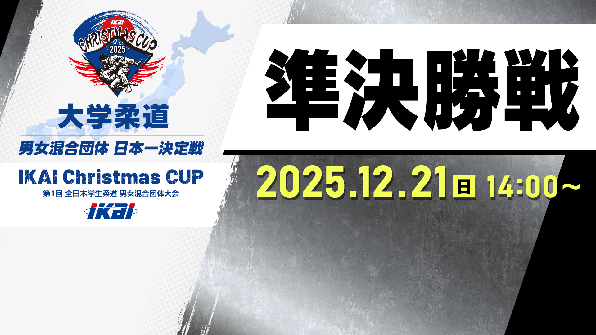 | 放送前 | 大学柔道 【LIVE】大学柔道 / IKAI Christmas CUP / 準決勝戦【第1回全日本学生柔道男女混合団体大会】 | 2025年12月21日 14:00〜 |